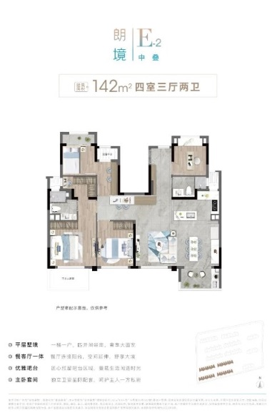 建面約100㎡的高層B戶型將南向三開(kāi)間和餐客廳一體化設(shè)計(jì)完美融合。更在空間尺度上進(jìn)行了大膽升級(jí),尤其是南北通透的主臥套房設(shè)計(jì),讓居住體驗(yàn)達(dá)到極致舒適。