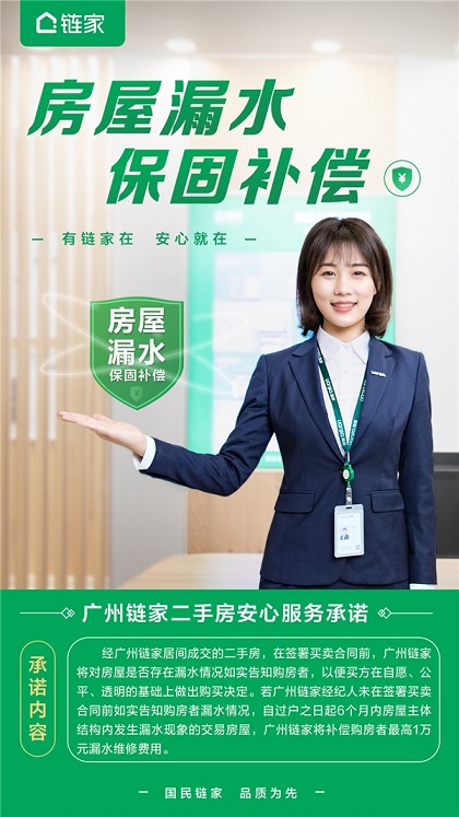 針對這一情況,廣州鏈家“房屋漏水,保固補償”安心服務(wù)條款,承諾自交易房屋過戶之日起半年內(nèi),房屋主體結(jié)構(gòu)內(nèi)發(fā)生漏水現(xiàn)象,廣州鏈家將根據(jù)漏水情況補償維修費用。自該項服務(wù)承諾落地以來,單筆最高的賠墊付金額已達10000元。