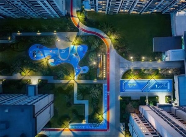 環(huán)氧健康跑道,串聯(lián)整個(gè)住宅空間,在運(yùn)動中感受風(fēng)景的流動;多功能景觀會客廳,休閑社交自由隨心。