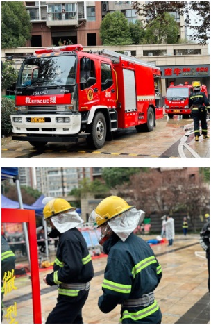 演練當(dāng)天,消控室先發(fā)現(xiàn)火情,發(fā)出火警具體位置,監(jiān)控呼叫巡邏崗現(xiàn)場查看。巡邏崗攜帶滅火器達(dá)到現(xiàn)場,并確認(rèn)有火災(zāi),上報(bào)班長,請求支援,班長及時匯報(bào)項(xiàng)目現(xiàn)場指揮員,F(xiàn)場指揮員宣布啟動消防應(yīng)急預(yù)案,并匯報(bào)總指揮,消控室撥打119報(bào)警滅火人員接通報(bào)后,60秒內(nèi)穿戴好消防服,帶水帶、器材,趕往現(xiàn)場滅火開場,鋪設(shè)水槍滅火。同時,警戒組開始現(xiàn)場用警戒帶設(shè)置隔離區(qū)域,只許出,不許進(jìn)的原則,疏散組手拿指揮棒引導(dǎo)疏散人員進(jìn)行撤離。警戒組在主要路口處設(shè)置引導(dǎo)員,準(zhǔn)備指引消防車輛進(jìn)入,與消防人員配合進(jìn)行滅火,共同全身心投入到實(shí)戰(zhàn)演練中,這也使大家切實(shí)地感受到消防安全的嚴(yán)肅與重要。