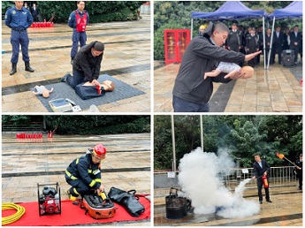 技能精科普 實(shí)操強(qiáng)運(yùn)用。現(xiàn)場醫(yī)療救護(hù)組開展海姆立克急救、CPR(心肺復(fù)蘇術(shù))和AED(自動除顫裝置)演練教學(xué),急救知識,同樣不能落下。消防救援器材是應(yīng)急救援人員的作戰(zhàn)武器,能夠提高應(yīng)急救援能力,保障應(yīng)急救援工作的高效開展,消防大隊(duì)官兵一一介紹并演示了常見救援器材。在掌握消防基礎(chǔ)知識的同時掌握滅火器材的操作方法,達(dá)到學(xué)以致用的目的,現(xiàn)場還組織大家對滅火器進(jìn)行了實(shí)地操作體驗(yàn)。這種理論與實(shí)踐相結(jié)合的演練方式,既增強(qiáng)了大家的安全意識與自護(hù)自救能力、消除了對火災(zāi)的恐懼,也鍛煉了大家快速果斷處理突發(fā)事件的能力。