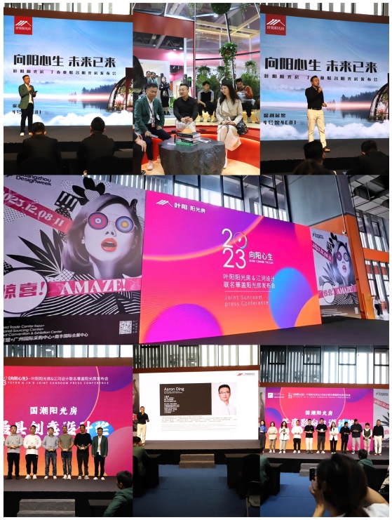 展館場(chǎng)景以未來(lái)人居“療愈藝術(shù)”為設(shè)計(jì)主線,注重空間精神性與人文性,在2023廣州設(shè)計(jì)周中,攜手著名設(shè)計(jì)機(jī)構(gòu)江河設(shè)計(jì)院同頻共創(chuàng),將設(shè)計(jì)概念與古建智慧巧妙融合,對(duì)陽(yáng)光房做出新型藝術(shù)詮釋。并于12月9日召開葉陽(yáng)陽(yáng)光房&江河設(shè)計(jì)聯(lián)名崋蓋陽(yáng)光房發(fā)布會(huì),近距離面向各界設(shè)計(jì)師、面向市場(chǎng)展示葉陽(yáng)產(chǎn)品理念和品牌價(jià)值觀,以陽(yáng)光房建筑形式與用戶共同見證新時(shí)代人居發(fā)展。江河設(shè)計(jì)品牌創(chuàng)始人丁春亞先生在現(xiàn)場(chǎng)帶來(lái)設(shè)計(jì)解讀。同時(shí),葉陽(yáng)攜手CCTV共同創(chuàng)辦的《最美國(guó)潮陽(yáng)光房》設(shè)計(jì)征集大賽的頒獎(jiǎng)典禮在此同期舉行,丁春亞先生與葉陽(yáng)陽(yáng)光房創(chuàng)始人熊詩(shī)才先生一起為《最美國(guó)潮陽(yáng)光房》設(shè)計(jì)征集大賽中的獲獎(jiǎng)設(shè)計(jì)師頒發(fā)“年度影響力設(shè)計(jì)獎(jiǎng)”。