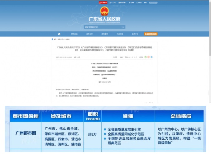 12月20日,《廣州都市圈發(fā)展規(guī)劃》正式頒布,由廣州引領(lǐng),涵蓋佛山市全域,肇慶市端州區(qū)、鼎湖區(qū)、高要區(qū)、四會市,清遠市清城區(qū)、清新區(qū)、佛岡縣,旨在構(gòu)建粵港澳大灣區(qū)高質(zhì)量發(fā)展主引擎、同城示范區(qū)、全國制造業(yè)和服務(wù)業(yè)融合發(fā)展典范區(qū)。