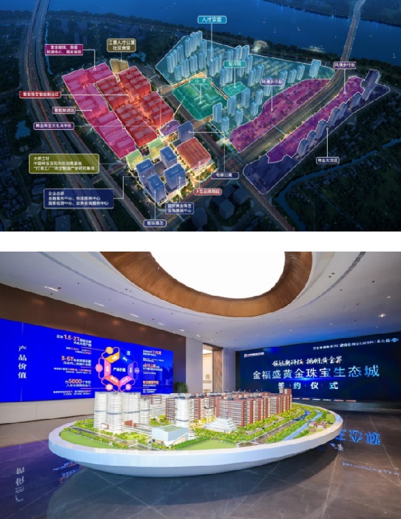 金福盛總投資約300億元,規(guī)劃用地面積約1600畝,總建筑面積約265萬㎡,在佛山倫教建造以“黃金珠寶+智能制造+數(shù)字經(jīng)濟”三核為驅(qū)動,致力于發(fā)展成為智能制造、高端裝備智造、創(chuàng)意設(shè)計、珠寶展銷、品牌發(fā)布、商務(wù)會展、產(chǎn)業(yè)孵化、創(chuàng)新金融服務(wù)、新零售電商、文旅休閑等全產(chǎn)業(yè)鏈功能為一體的產(chǎn)城融合人文城市標(biāo)桿,實現(xiàn)產(chǎn)業(yè)鏈數(shù)字化運營和智能制造的高質(zhì)量發(fā)展。