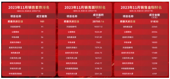說到產(chǎn)品,四川邦泰被人津津樂道的在售產(chǎn)品就不得不提“以超配敬天新”的邦泰·天府云璟。今年10月28日首開,114、130平當日上午即清盤,143、170平也只剩少量房源,勁銷5億元;在短短兩個月左右,已累計實現(xiàn)銷售金額近9.5億元,到訪超過6000組;11月數(shù)據(jù)顯示,在天府新區(qū)獲得銷售套數(shù)、銷售金額、銷售面積三項領(lǐng)先。而在近日,項目迎來了第5批次的加推,再次引發(fā)高關(guān)注,成交火熱。毫無疑問,客戶用真金白銀票選出了天府新區(qū)當下的矚目新星。