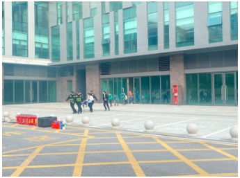 隨著消防廣播的響起,本次消防演練拉開(kāi)序幕。各樓層人員在安全員的指引下,低姿彎腰,用濕毛巾捂住口鼻,快速有序地從消防通道撤離到安全地點(diǎn)。同時(shí),此次還模擬了傷員救助的情況,大家齊心協(xié)力用擔(dān)架抬出傷員,爭(zhēng)取在火災(zāi)發(fā)生時(shí),保障每個(gè)人的人身安全。
