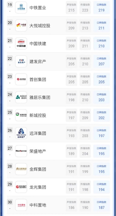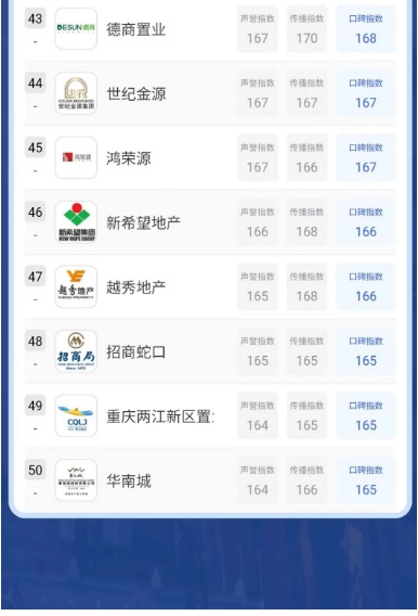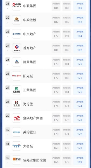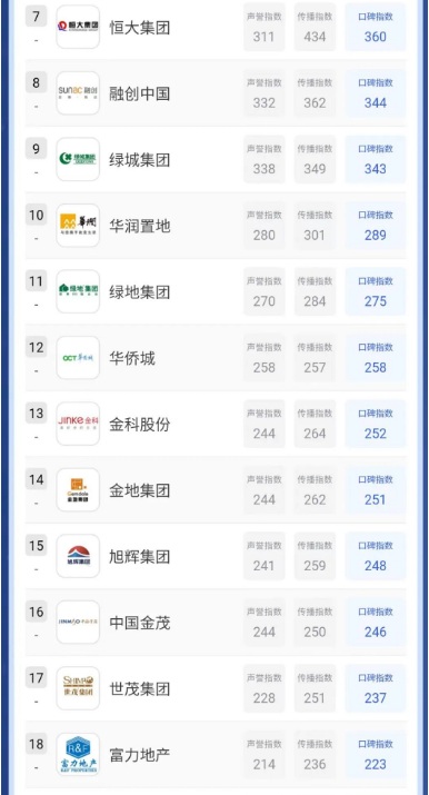 本期榜單為2022中國房地產(chǎn)品牌線上口碑指數(shù)年度排行榜。