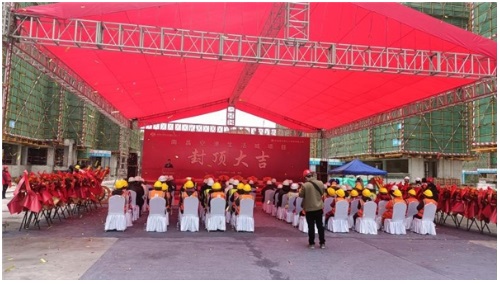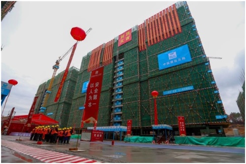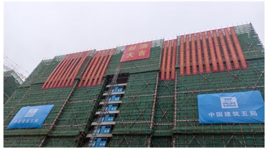 在建設過程中,項目施工單位中國建筑第五工程局克服高溫、風雨、大風等一系列的不利因素,力求做到工程質量精品,進度計劃節(jié)點準時跟進,以嚴要求、高標準完成各項施工任務,穩(wěn)步推進主體結構全面封頂。