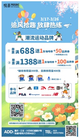 除了豐富的現(xiàn)場(chǎng)活動(dòng),重慶悅薈在福利上也下足了功夫,除了每月豐富的積分換禮、生日禮等會(huì)員活動(dòng)外,還有“追風(fēng)拾趣·放肆熱練”為主題的運(yùn)動(dòng)品牌折扣禮,單票滿688即送1張咖啡券+50元品牌券;單票滿1388送1張咖啡券+1000元品牌券,更有阿迪達(dá)斯、NIKE、ANTA、LI-NING...等一眾大牌參與,為在打卡碳水市集后的消費(fèi)者創(chuàng)造另一嗨點(diǎn)。極大滿足了消費(fèi)者的體驗(yàn)感。