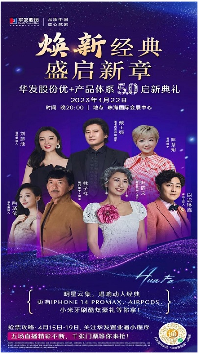 本次華發(fā)股份優(yōu)+產(chǎn)品體系5.0啟新典禮,將邀請到陳慧嫻、林子祥、葉倩文、戴玉強(qiáng)四位重磅級歌手現(xiàn)場獻(xiàn)唱,由著名主持人尉遲琳嘉、劉彥池、陶珞依現(xiàn)場主持,用經(jīng)典金曲聲動人心,與廣大華發(fā)家人們共同見證華發(fā)股份優(yōu)+產(chǎn)品體系5.0的重磅發(fā)布!