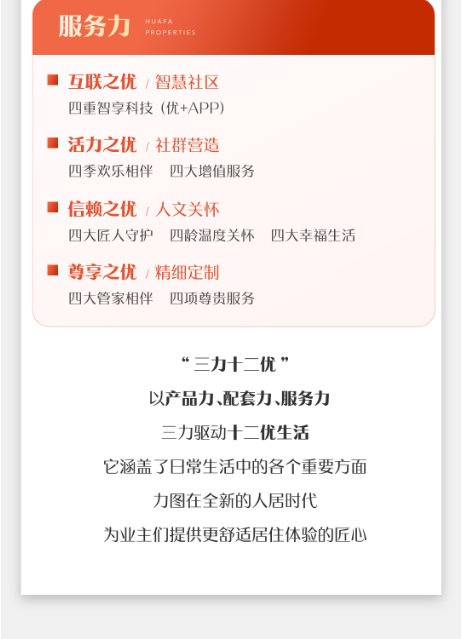 從1.0到5.0,華發(fā)股份優(yōu)+產(chǎn)品體系的更新既包含著華發(fā)對(duì)經(jīng)典的傳承,也是華發(fā)作為“長期主義”踐行者,在貼合新時(shí)代人居需求而做出的煥新升級(jí)。華發(fā)股份優(yōu)+產(chǎn)品體系5.0重點(diǎn)圍繞“居民因生活方式變遷所產(chǎn)生的人居新需求”,實(shí)現(xiàn)了多維度的迭代。華發(fā)以產(chǎn)品力、服務(wù)力、配套力為底盤,通過推出全新的“三力十二優(yōu)·優(yōu)+質(zhì)感生活體系”,打造產(chǎn)品與自然、人文的互動(dòng)關(guān)系,從而引領(lǐng)新時(shí)代城市生活方式。未來,華發(fā)也將依托優(yōu)+產(chǎn)品體系5.0,繼續(xù)從長期主義出發(fā),致力于打造更多新時(shí)代精品人居,為支持華發(fā)、深愛華發(fā)的華發(fā)家人創(chuàng)造更美好的居住生活體驗(yàn)。