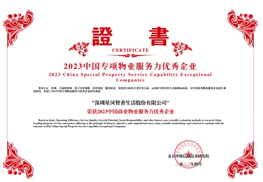 星河智善生活作為國內(nèi)領(lǐng)先的美好城市生活服務(wù)提供商、國家一級物業(yè)服務(wù)企業(yè)、連續(xù)8年中國物業(yè)服務(wù)百強(qiáng)企業(yè),未來會繼續(xù)秉承“星服務(wù) 心托付”的服務(wù)理念,致力于提升生活品質(zhì),成為一流的美好城市生活服務(wù)提供商。