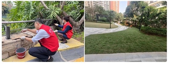 住在星河,常住常新。星河智善人持續(xù)探索和創(chuàng)新物業(yè)服務(wù),追求更卓越的品質(zhì),讓家園經(jīng)歷歲月的洗禮之后依舊美好如初。從園區(qū)內(nèi)外的安全性、舒適性、美觀性等角度出發(fā),星河智善生活針對設(shè)施設(shè)備硬件開展煥新行動,對社區(qū)包括但不限于路面、路燈、游樂場、墻體等點(diǎn)位進(jìn)行升級改造,提升業(yè)主的體驗舒適度。同時,在園區(qū)內(nèi)打造微景觀,例如在草坪上設(shè)置動物雕像、翻新的彩虹路面、樹上的小花籃。