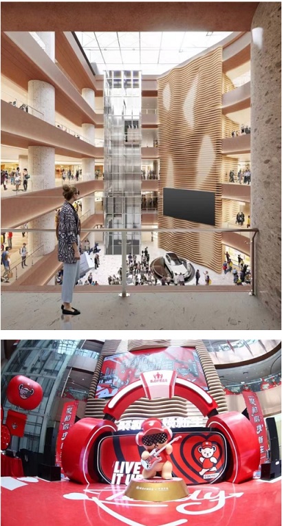 硬件改造方面,項目聘請日本著名PINHOLE商業(yè)公司做建筑改造設計,將前期百貨與購物中心連為一體,改變整體動線,優(yōu)化樓體結構,中庭全面煥新。改造后動線循環(huán)無死角,單層環(huán)形動線通暢,而超大尺度挑空,既提升了空間開放感,營造空間立體性,又給消費者帶來直接的感官感受。