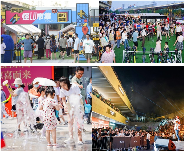 戶外的雙下沉廣場(chǎng)也極具特色,北側(cè)營(yíng)造面向家庭客群的自然游憩“綠野親子樂園”,南側(cè)營(yíng)造集中轉(zhuǎn)休息、拍照打卡、主題市集于一體的“京西騎行驛站”。同時(shí),這里還能開展豐富的戶外主題活動(dòng),戶外場(chǎng)景為消費(fèi)者帶來耳目一新的感覺。