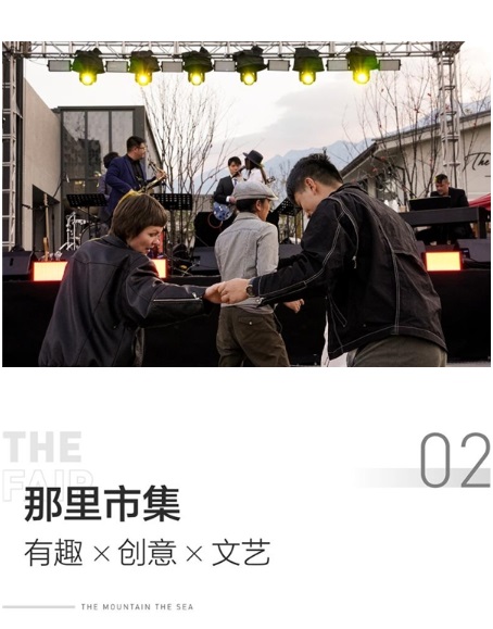 藝術(shù)是對生活的濃縮與提煉,而生活中的美學(xué)精神和想象力,又將藝術(shù)還原成更鮮活的具象。那山那海從“藝術(shù)家的心故鄉(xiāng)、文化界的磁力場“角度出發(fā),以活潑的街巷、豐盛的公共場所和鮮明的藝文空間來鏈接美好生活,讓街頭策展、行為藝術(shù)、話劇舞蹈、音樂表演等藝術(shù)活動走進小鎮(zhèn)日常。在項目建設(shè)之初,那山那海便創(chuàng)立了以“那生活”、“那藝術(shù)”為主題的社群活動,將天馬行空的創(chuàng)造力灌注到日常生活的細節(jié)中,營造“藝術(shù)化生活、生活化藝術(shù)”。