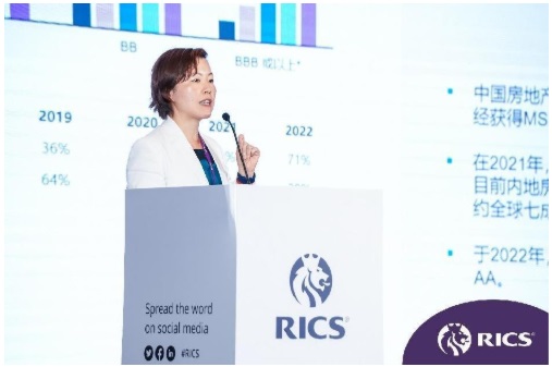 圖 | 仲量聯(lián)行大中華區(qū)評估咨詢服務(wù)部 大灣區(qū)拓展總監(jiān)陳曼藝帶來主旨演講:“數(shù)字化時代中的房地產(chǎn)ESG 策略 如何降低環(huán)境風(fēng)險及提升資產(chǎn)價值”