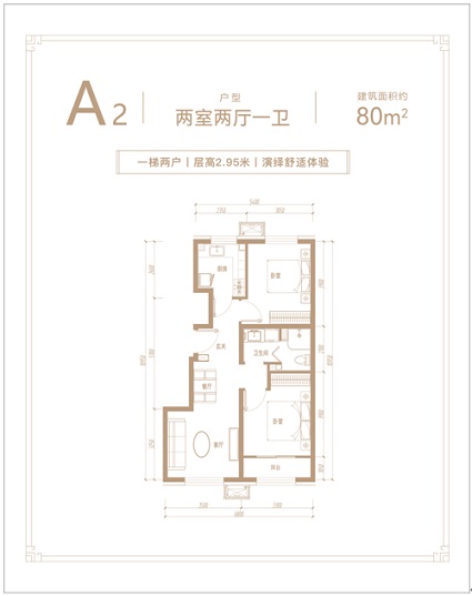 約80平米兩居,戶(hù)型方正,視野極佳,雙面寬朝南;主臥面寬達(dá)3.3米,附帶陽(yáng)臺(tái);衛(wèi)生間洗、沐、衛(wèi)三分離;次臥面寬超3米。
