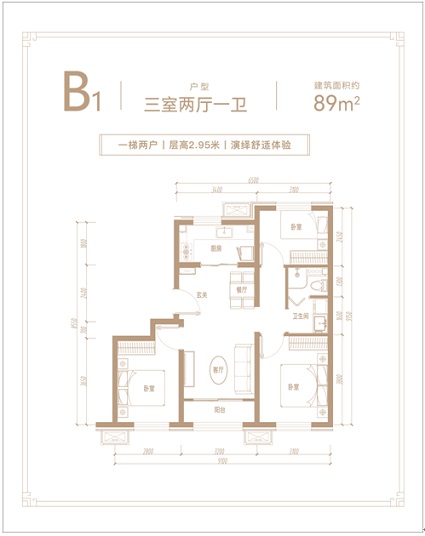 約89平米三居,三面寬朝南,南向尺度達(dá)9.1米;餐客廚一體化設(shè)計(jì)營(yíng)造寬闊空間,更契合當(dāng)代人生活潮流。