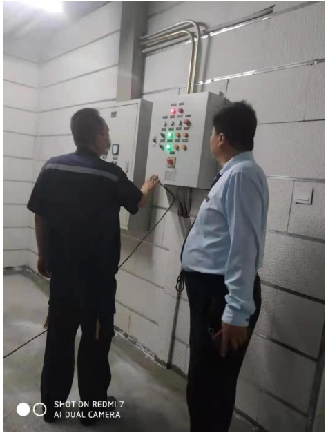 工程人員冒雨檢查項(xiàng)目設(shè)備設(shè)施,確保正常運(yùn)行。