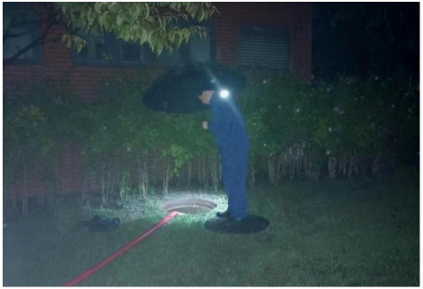 工程人員正在進(jìn)行夜間巡視,及時(shí)排查暴雨后的安全隱患。
