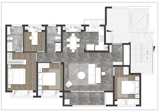 約136㎡4房2廳2衛(wèi),三代同堂或二胎家庭也能滿足,四開間朝南的格局進階改善;