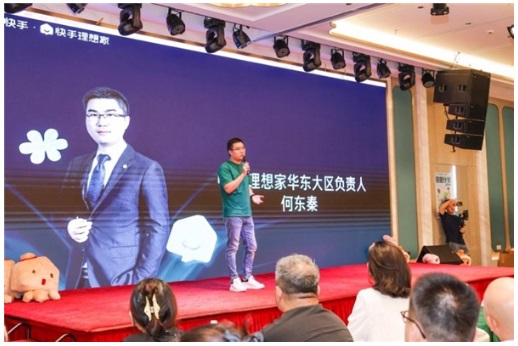 (快手理想家華東大區(qū)總經(jīng)理何東秦在會上介紹理想家業(yè)務(wù))