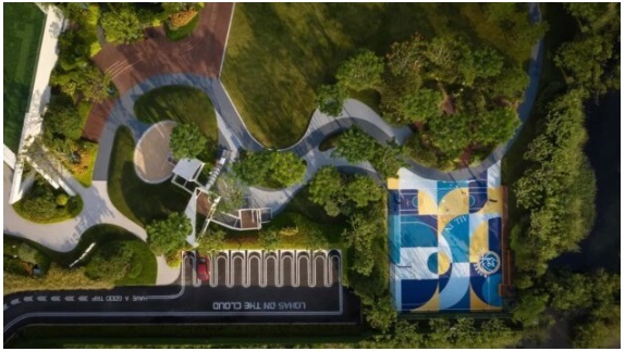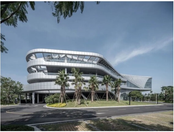 具有強(qiáng)烈的視覺沖擊建筑型體,蘊(yùn)含著凝固與律動(dòng)之美,設(shè)計(jì)靈感來源于高爾夫運(yùn)動(dòng)的擊球瞬間,對(duì)于動(dòng)態(tài)平衡的全新解構(gòu)。