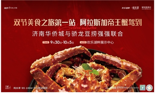 9月30日-10月5日,濟(jì)南華僑城純水岸項(xiàng)目還將舉辦雙節(jié)美食之旅。第一站為阿拉斯加“帝王蟹”品鑒活動(dòng),讓客戶盡情享受美食的同時(shí),感受中國(guó)傳統(tǒng)的“品蟹文化”,感受節(jié)日的溫暖。