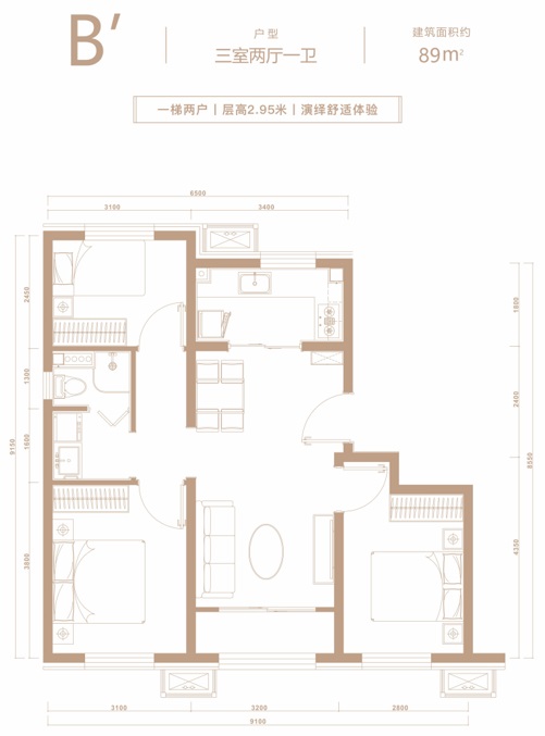 項(xiàng)目在戶型空間設(shè)計(jì)上兼顧了“功能性”與“舒適性”。建面約80㎡的兩居,動(dòng)靜分區(qū),南向主臥帶獨(dú)立衛(wèi)生間與陽(yáng)臺(tái),視野開(kāi)闊,廚房、餐廳與客廳的動(dòng)線流暢,滿足家庭多元活動(dòng)需求;建面約89㎡三居,雙南向臥室布局,視野更寬闊,采光面積更大,客廳等活動(dòng)空間寬敞,餐廚一體設(shè)計(jì)更加便捷,居住體驗(yàn)十分舒適。
