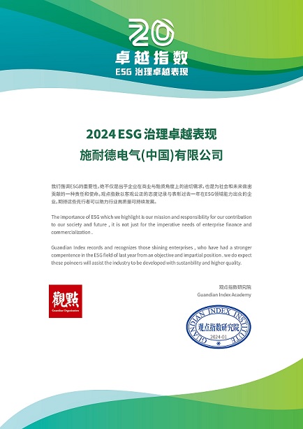 近日,由觀點機構主辦,以“可持續(xù)未來”為主題的2024觀點ESG圓桌成功舉辦,觀點指數(shù)研究院獨家發(fā)布《卓越指數(shù)·2024ESG治理表現(xiàn)報告》。憑借在可持續(xù)發(fā)展領域的長期踐行,并依托數(shù)字化技術優(yōu)勢創(chuàng)造的價值賦能,施耐德電氣成為唯一一家以供應商身份入選“卓越指數(shù)•2024ESG治理卓越表現(xiàn)”榜單的企業(yè)。