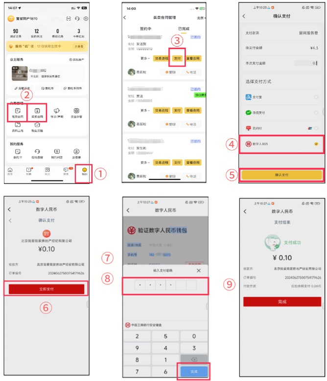 為了讓消費者順暢、安全、便捷的使用數(shù)字人民幣功能,我愛我家成立專項工作組,積極梳理業(yè)務(wù)流程與有資質(zhì)的銀行洽談并開展技術(shù)對接。經(jīng)過嚴謹?shù)募夹g(shù)研發(fā)與測試及各部門的協(xié)同合作,目前我愛我家的核心經(jīng)紀(jì)業(yè)務(wù)CBS系統(tǒng)以及相寓應(yīng)用程序端,都已成功部署了數(shù)字人民幣支付功能,使得消費者在我愛我家的各類業(yè)務(wù)場景中,均能毫無障礙地使用數(shù)字人民幣進行交易。