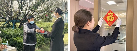 “害!沒事兒,業(yè)主您回吧,這魚腥水我來拖,小事情小事情!被馃峄I備著的團圓飯,夾雜著一點小意外,淡淡的魚腥味,也只在樓道停留了那么一小會兒,熱情的保潔大姐,用自己的質樸爽快,給新年的園區(qū)帶來了整潔靚麗。在公區(qū)干道、單元樓道、地下車庫……都有他們勤快的身影,而過年期間的他們,努力為所有家人與朋友創(chuàng)造干凈舒適的環(huán)境,全心全意將溫暖送入家家戶戶。