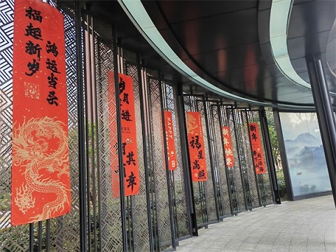 從帶有龍圖騰的氛圍裝飾,到筆墨濃香的春聯(lián),到新春心愿墻寫下祝福,再到流光溢彩的花燈……精心裝扮的造型繽紛多彩,傳遞著星河智善生活對居民的祝福,也為居民的回家路送上驚喜。