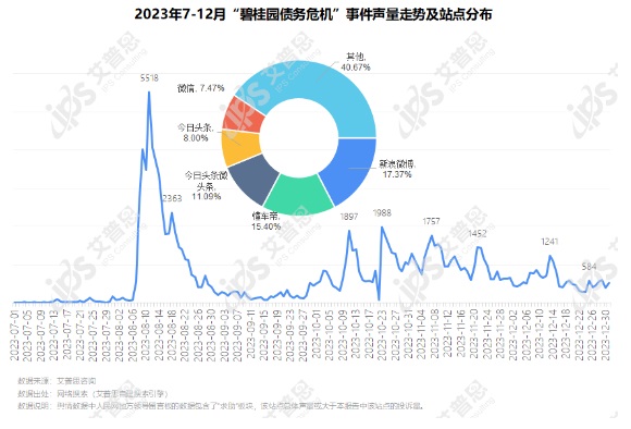 圖2:2023年7-12月“碧桂園暴雷”事件聲量走勢及站點分布