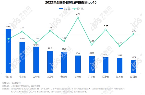 2023年房地產(chǎn)投訴地域分布:甘肅等四省投訴比偏高