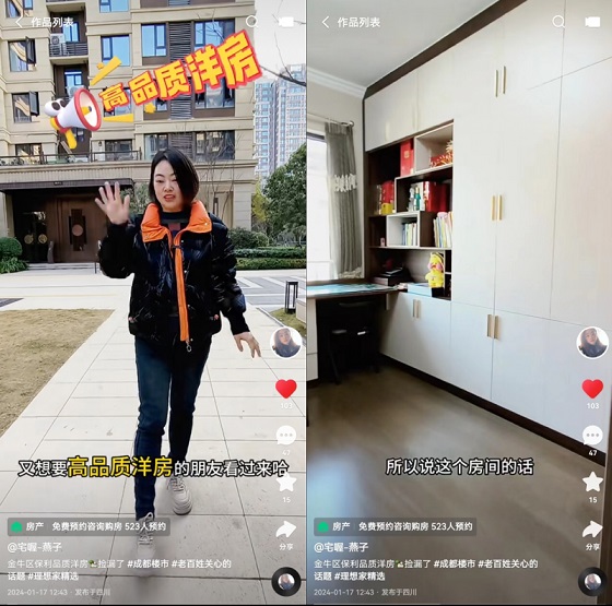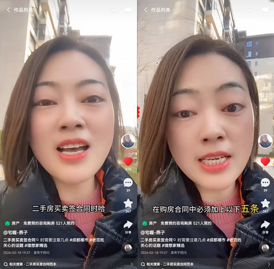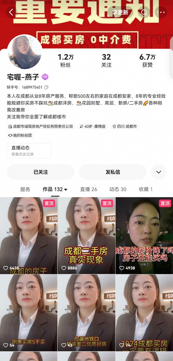 2023年10月,燕子正式轉(zhuǎn)行成為房產(chǎn)主播,燕子通過@宅喔-燕子的快手賬號,兩個月成交3套房產(chǎn),GTV超過300萬,收獲了超萬名快手老鐵的信任。