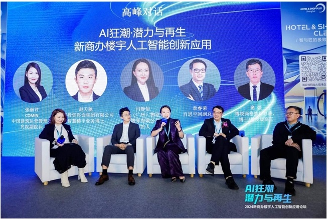 本次大會設(shè)置了一場高峰對話環(huán)節(jié),第一場高峰論壇探討“AI狂潮·潛力與再生 商辦樓宇人工智能場景應(yīng)用”,上海投資咨詢集團智慧樓宇業(yè)務(wù)博士趙天馳,三渡(廣州)物業(yè)咨詢服務(wù)有限公司創(chuàng)始人、物業(yè)管理行業(yè)專家講師閆靜怡,百思空間副總裁章睿榮,博銳尚格執(zhí)行總裁、博士/教授級高工竇強,進行了精彩觀點分享和思想碰撞,對話由COMIN中國建筑運營管理研究院副院長張麗君主持。