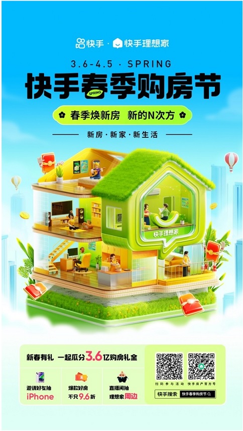 在房地產(chǎn)市場政策不斷出臺的帶動下,快手理想家春季購房節(jié)以高額度福利禮金和平臺各類資源,將進一步發(fā)揮直播賣房模式優(yōu)勢,助力供需雙方高效對接,抓住“金三銀四”的節(jié)點,打開線上房產(chǎn)營銷交易新市場,也讓快手用戶更輕松地買到適合自己住的理想家。