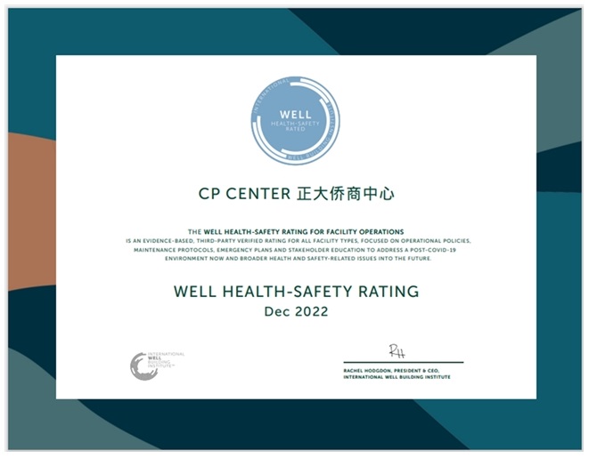 圖注:北京正大中心獲“IWBI(國際WELL建筑研究所) WELL HSR 健康安全評價(jià)認(rèn)證”