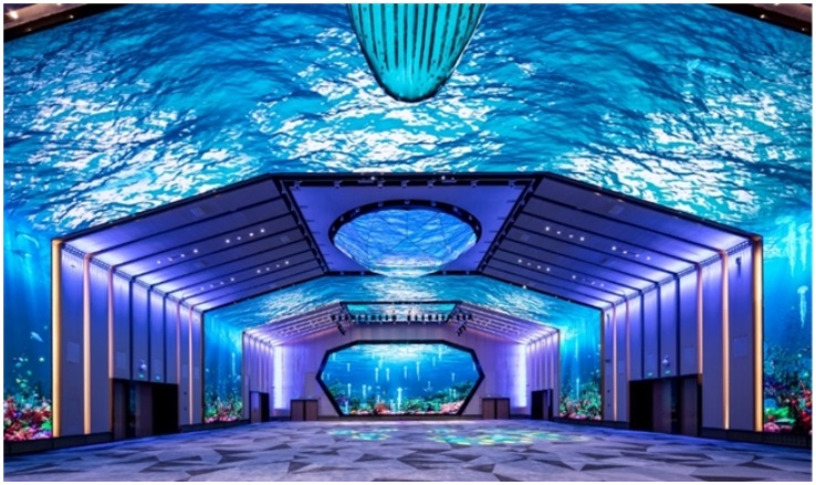 大廈一系列的綠色智能化系統(tǒng),在降低企業(yè)運(yùn)營成本、極大提高建筑本身運(yùn)行效率的同時(shí),還配備CBD核心區(qū)獨(dú)有商業(yè)和領(lǐng)創(chuàng)全球的商務(wù)會議空間——正大宴會廳。契合企業(yè)的商務(wù)活動需求,主廳面積1400平方米、挑高10.8米,大廳使用無柱式結(jié)構(gòu),恢弘大氣,屋頂中間還設(shè)有一個(gè)可開合鉆石屏,營造夢幻視覺效果,將商務(wù)會議體驗(yàn)推上震撼高度。