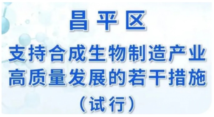 2024年1月,昌平區(qū)政府專門發(fā)布了《昌平區(qū)支持合成生物制造產(chǎn)業(yè)高質(zhì)量發(fā)展的若干措施(試行)》,從創(chuàng)新孵化、產(chǎn)業(yè)集群、項(xiàng)目落地、推廣應(yīng)用等各個(gè)環(huán)節(jié)出發(fā),促進(jìn)生物制造產(chǎn)業(yè)高質(zhì)量發(fā)展。