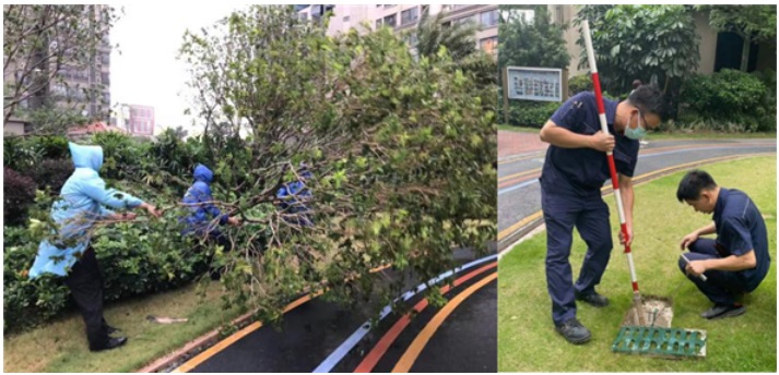 狂風(fēng)過后,樹枝凌亂,安全隱患凸顯。物業(yè)人員迅速行動,清理那些有安全隱患的樹枝,同時對被風(fēng)吹倒的樹木進(jìn)行精心加固,讓道路重新恢復(fù)安全與暢通。工程人員也在第一時間巡視項目的設(shè)備設(shè)施,排查暴雨后的安全隱患。保潔人員也不甘示弱,他們忙碌地清理著水漬,一遍又一遍地沖洗、清掃,只為讓我們的家園盡快擺脫雨水的痕跡,恢復(fù)往日的整潔。