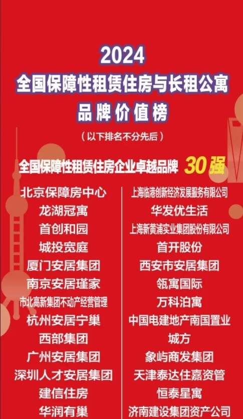 全國(guó)保障性租賃住房企業(yè)卓越品牌30強(qiáng)
