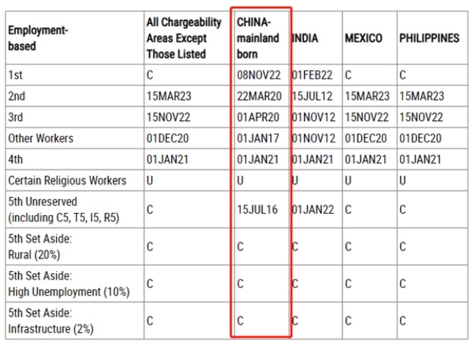 表B即遞交申請(qǐng)日(DFA)表上,中國(guó)大陸出生投資人的排期從2017年1月1日倒退回2016年10月1日。