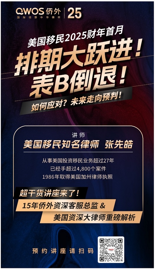 近日,美國(guó)國(guó)務(wù)院簽證辦公室公布了2024年10月 —— 即2025財(cái)年第一個(gè)月份的簽證公告牌。讓眾多美國(guó)EB-5老投資人喜大普奔的是,EB-5舊政的表A大幅前進(jìn)了7個(gè)月。