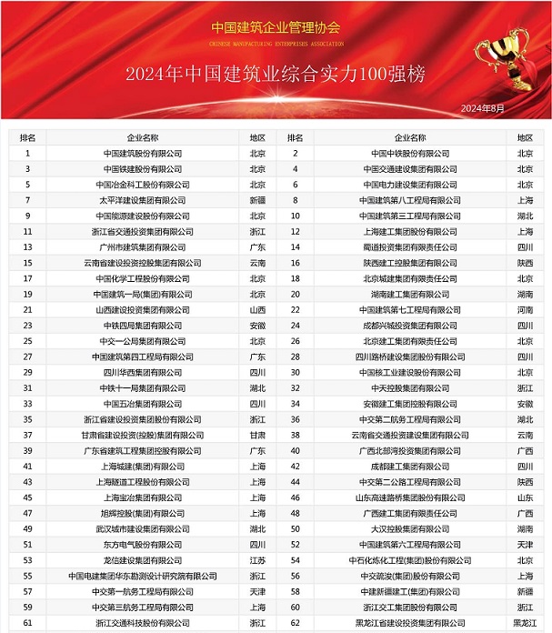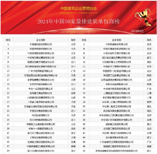 在經(jīng)濟發(fā)展的浪潮中,建筑業(yè)始終是國家建設的中流砥柱。近日,由中國建筑企業(yè)管理協(xié)會隆重發(fā)布的“2024年中國建筑業(yè)綜合實力100強榜暨中國50家最佳建筑承包商”,這不僅是對建筑企業(yè)的一次高度認可,更是為行業(yè)發(fā)展樹立了新的標桿。