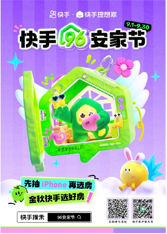 即日起,上快手搜索“96安家節(jié)”可進入活動頁面。期間,用戶向房產主播提交房產咨詢或購買意向、觀看房產類短視頻完成任務、分享鏈接邀請好友助力,都可獲得iPhone等獎品的抽獎機會。此外,完成線上選房、線下看房還有更多優(yōu)惠贈送。