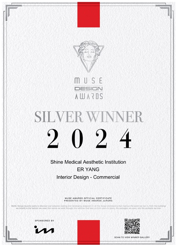 ● 2024 榮獲美國繆斯設(shè)計(jì)獎(jiǎng)MUSE DESIGN AWARDS 銀獎(jiǎng) -Shine醫(yī)療美容機(jī)構(gòu)