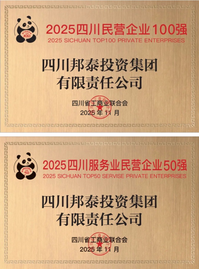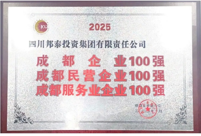 此外,在10月28日發(fā)布的“四川企業(yè)100強”榜單與10月23日發(fā)布的“成都企業(yè)100強”榜單中,邦泰均是連續(xù)11年榮耀上榜,位列“2025年四川企業(yè)100強”第63名、“2025年四川服務業(yè)企業(yè)100強”第23名,與“2025成都民營企業(yè)100強”第10位、“2025成都服務業(yè)企業(yè)100強”第17位、“2025成都企業(yè)100強”第40位。連獲三獎,皆是蟬聯,充分體現了邦泰穩(wěn)健的發(fā)展態(tài)勢和實力。